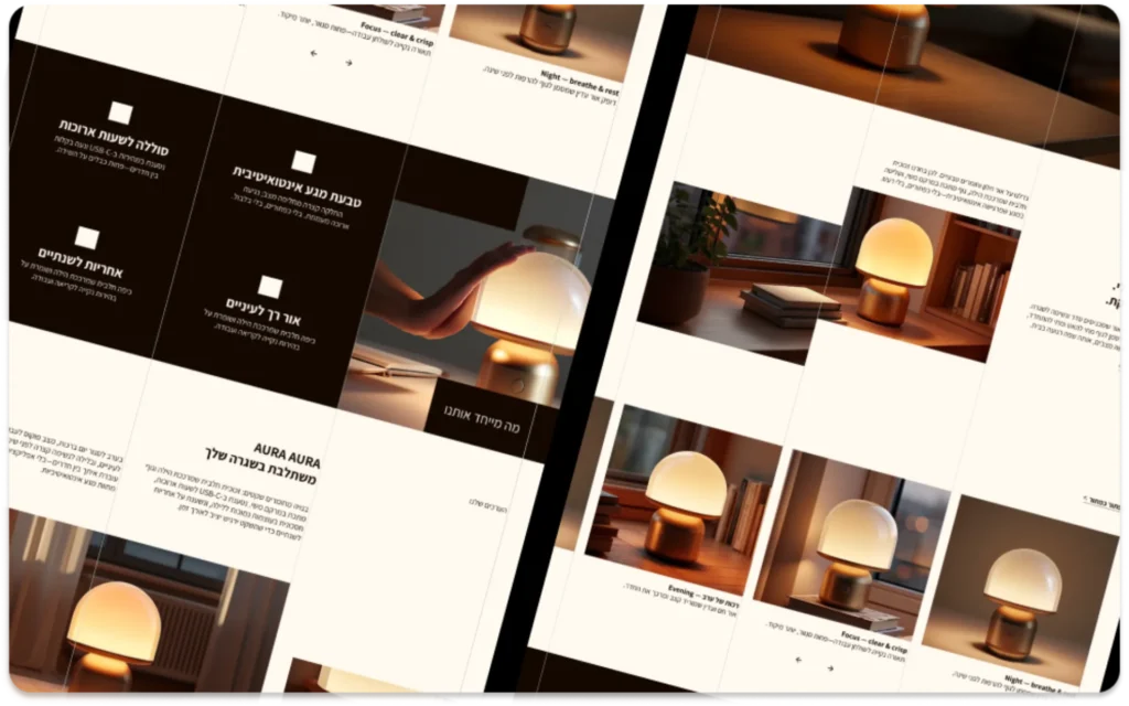 דף מכירה למנורת לילה שנותנת פוקוס בלה בלה בלה.